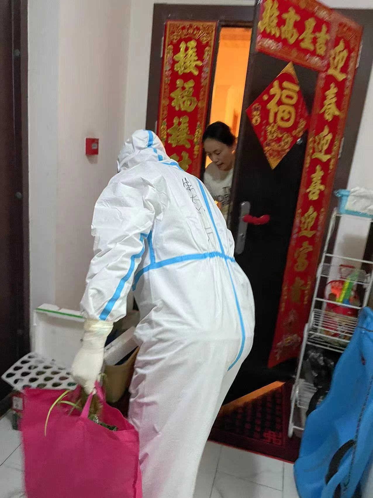 妻子仇红艳是亚泰社区的工作人员,疫情发生后,她作为第一线、第一批疫情防控组织人员,也全身心战斗在社区,全力保障居民物资供应,已经一个多月没有回过家了。就在前几天,仇红艳在工作中接触到阳性感染者,她作为密切接触者被拉到酒店进行集中隔离。这让胡勇的心一下子提到了嗓子眼,他说:“特别担心她被感染,每天数着日子,过了一周,心里的石头就能落地了。”虽然为妻子感到担忧,但是他一如既往地坚持参加到抗疫服务中去。