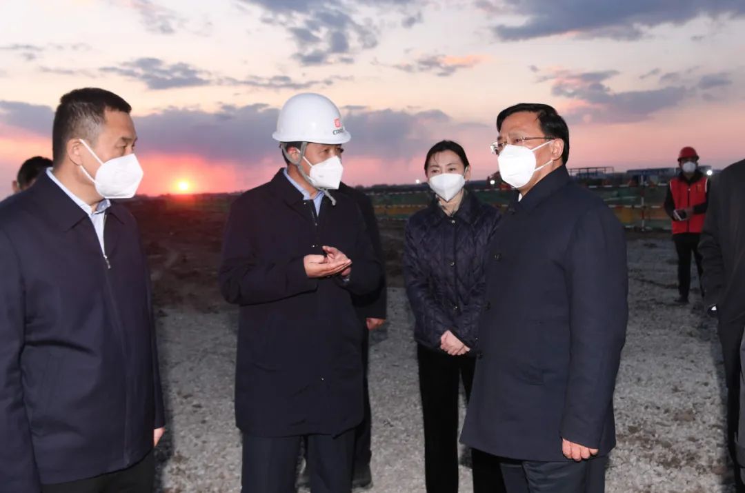 4月12日,韩俊在中车松原新能源产业基地项目现场查看项目建设进展情况。宋锴 摄