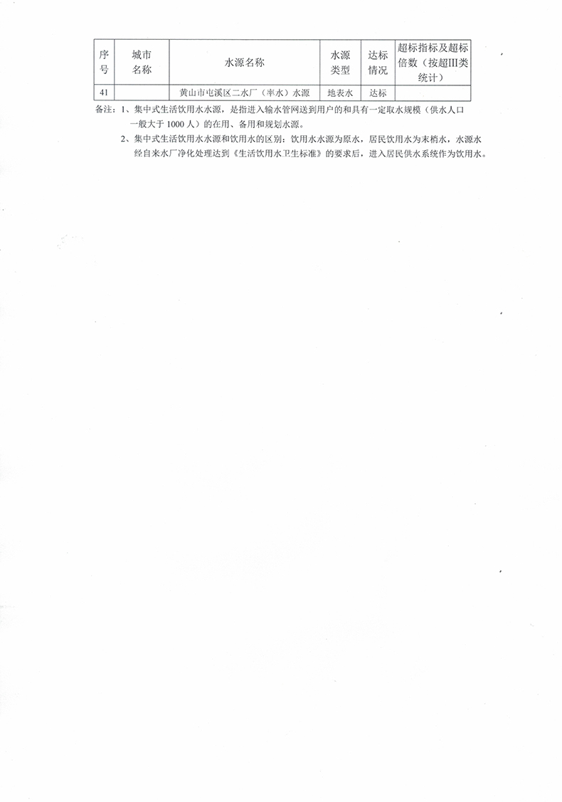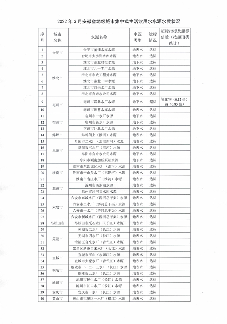 安徽省地级城市集中式生活饮用水水源水质状况(2022年3月)
