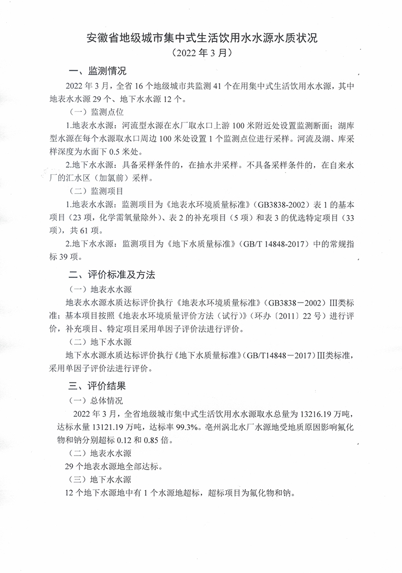 附件:安徽省地级城市集中式生活饮用水水源水质状况 (2022年3月).doc
