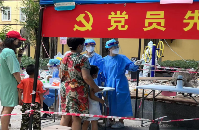 洪桥街于4月12日上午启动第三轮全员核酸检测,省环境科学研究院两名党员主动报名作为党员志愿者,支援街道核酸检测工作。