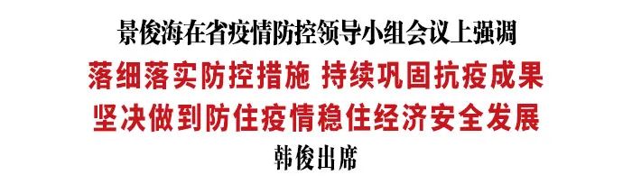 景俊海强调,全省各级党委、政府必须深刻、完整、全面认识党中央确定的疫情防控方针政策,坚决克服认识不足、准备不足、工作不足等问题,坚决克服轻视、无所谓、自以为是等思想,始终保持清醒头脑,毫不动摇坚持“动态清零”总方针,坚决同一切歪曲、怀疑、否定我国防疫方针政策的言行作斗争,压紧压实“四方责任”,严格落实“四早”和“四应四尽”要求,做到以变应变、以快制快,科学精准、动态清零,实现隔离收治能力再增强、分类收治机制再健全、疫情处置再提速,切实巩固住来之不易的疫情防控成果。要确保核酸检测资源无短缺,聚焦全员检测需求引进足量设备,加快培训组建常态化采样和检测队伍,坚决做到平战顺畅转换。要确保重点人员筛查管理无隐患,进一步强化对社会面服务人员防控,抓好治愈出院人员监测管理,不断提升监测预警灵敏性,发现异常情况第一时间报告、及时有效处置,迅速切断传播途径。要确保全员核酸检测无遗漏,扎实开展常态化检测筛查,在公共停车场、工厂车间、居民小区、公园广场、大型商超等附近设立流动检测点,建立步行15分钟核酸“采样圈”,抓好轮检抽检、关联赋码等工作。要确保重点场所排查无死角,密切监测棚户区、老旧小区、小旅馆、出租屋、建筑工地、学校、养老福利机构等场所,督促引导严格落实防疫措施,坚决消除防控盲区。要确保集中隔离管控无缝隙,加强集中隔离点规范管理,严格按照标准做好医疗废弃物处置和粪便污水消毒处理,规范解除隔离观察,坚决避免交叉感染、疫情外溢。要确保有序复工复产无风险,进一步压实企业责任,指导企业强化内部防控措施,建立“白名单”制度,坚决防止发生新的聚集性疫情。要确保小区管控无盲点,加强基层基础工作,严格落实“三区”动态管理措施,充分发挥“三长”职能作用,扎实开展无疫小区创建,引导群众自觉防疫,继续做好以老年人为重点的疫苗免疫接种,共同筑牢社区防线。要确保群众正常就医无障碍,科学调配红码、黄码、绿码医疗资源,完善预检分诊、分时段预约诊疗流程,加快恢复各科室诊疗工作,严格落实防院感措施。要确保外防输入无漏洞,把人、物、环境同防要求切实贯彻到位,严格落实入境人员全时空、全流程闭环管理措施,全面实施落地检、快追阳,坚决守住外防输入关口。