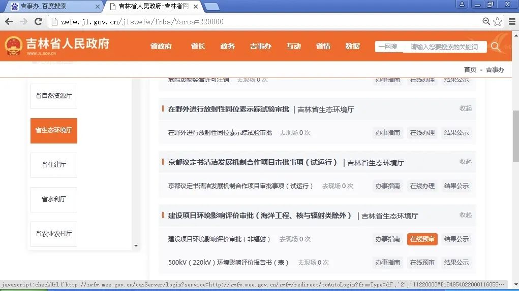 为落实省委、省政府关于统筹做好疫情防控和经济社会发展,在确保疫情安全可控前提下,科学有序推动复工复产的总体要求,进一步做好生态环境涉企审批服务,全力做好企业复工复产环评审批保障工作,4月份,省生态环境厅会同省政数局启动了“吉林省生态环境厅行政审批”电子印章和环评批复电子文书上线准备工作。此项任务涉及各类相关政策多,工作流程节点多,还要在国家环评审批系统、省级全流程审批系统和“吉事办”平台互传、共享数据,工作量巨大。为了使相关功能尽快上线,办事群众尽快享受到高效便捷服务,两个部门密切配合,抽调精干力量加班加点、昼夜奋战,仅用了7天时间,就完成了全部开发工作,实现了上线试运行。目前,该功能已通过相关测试,5月起正式投入实际使用。省级环评审批不仅可在线出具加盖电子印章的环评批复文件,更将批复文件电子版同步至“吉事办”平台。