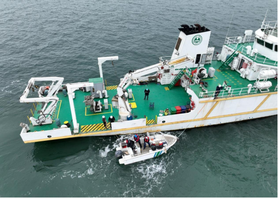 监测艇返回途中海况较差,固定过程需要经验和技巧