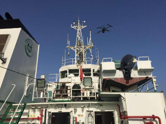 无人机观测海面浮阀情况,确保监测艇行驶安全