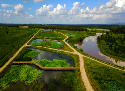 为进一步改善细河下游水质,阜新市在阜蒙县伊吗图镇,伊吗图河与细河的交汇处,建设人工湿地1500亩,形成了独特的自然人工复合生态湿地景观。人们可以近距离感受到荷花盛开、蒲草翠绿、白鹤盘旋、野鸭戏水、鸟语蛙鸣的自然景象,真正体现了“人水鱼草鸟”和谐互动的美好景象。
