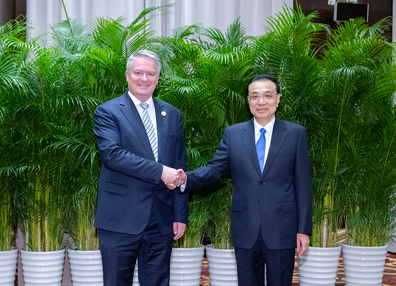 12月8日下午,国务院总理李克强在安徽省黄山市会见来华出席第七次“1+6”圆桌对话会的经济合作与发展组织秘书长科尔曼。新华社记者 翟健岚 摄