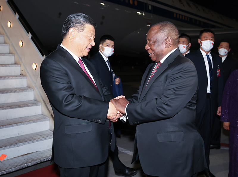 习近平抵达约翰内斯堡出席金砖国家领导人第十五次会晤并对南非进行国事访问