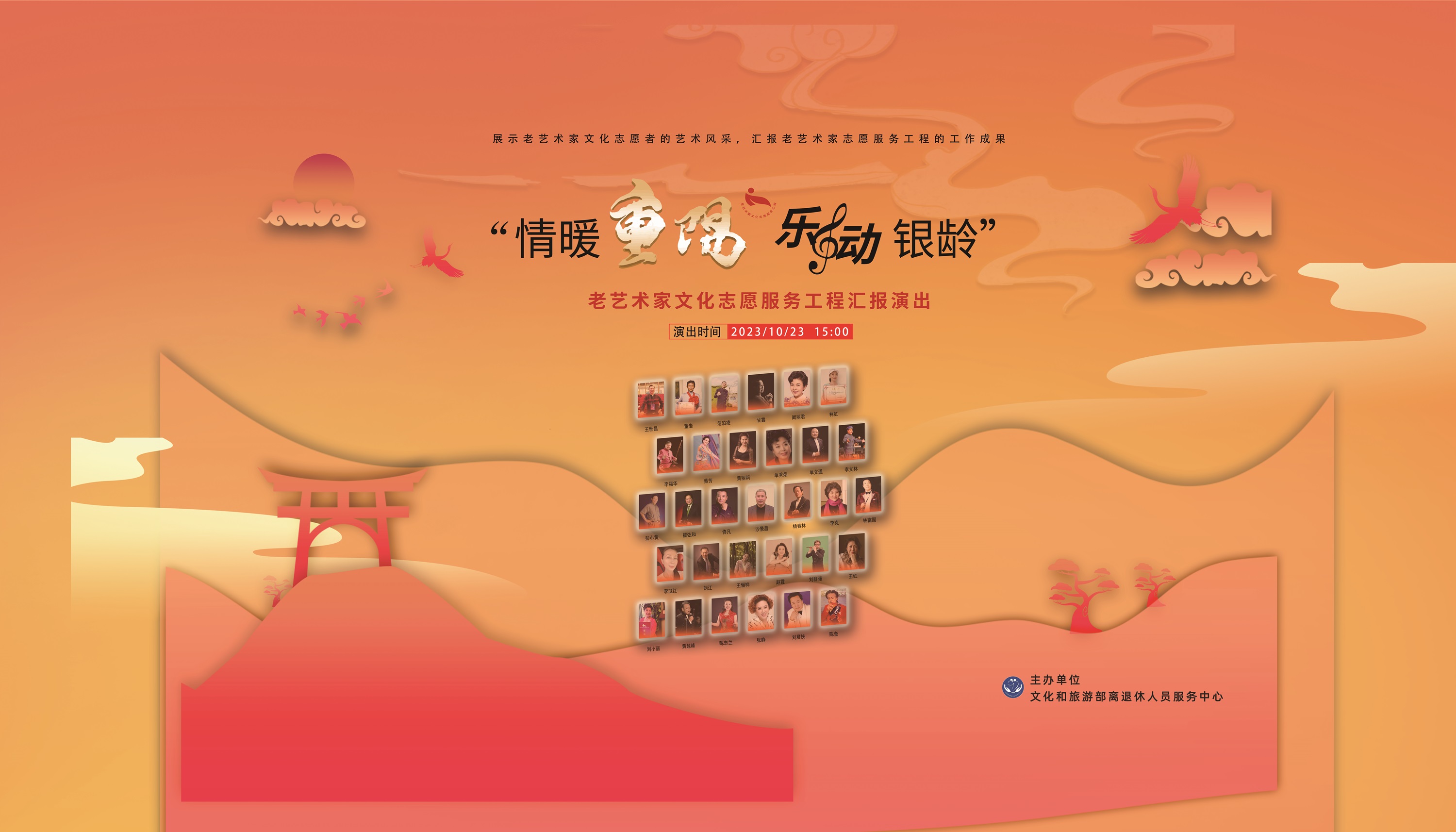 10月23日,值此重阳佳节之际,由文化和旅游部离退休人员服务中心主办的“情暖重阳 乐动银龄”老艺术家文化志愿服务工程汇报演出在北京举办。文化和旅游部党组书记、部长胡和平,部有关司局和直属单位负责同志等出席观演。