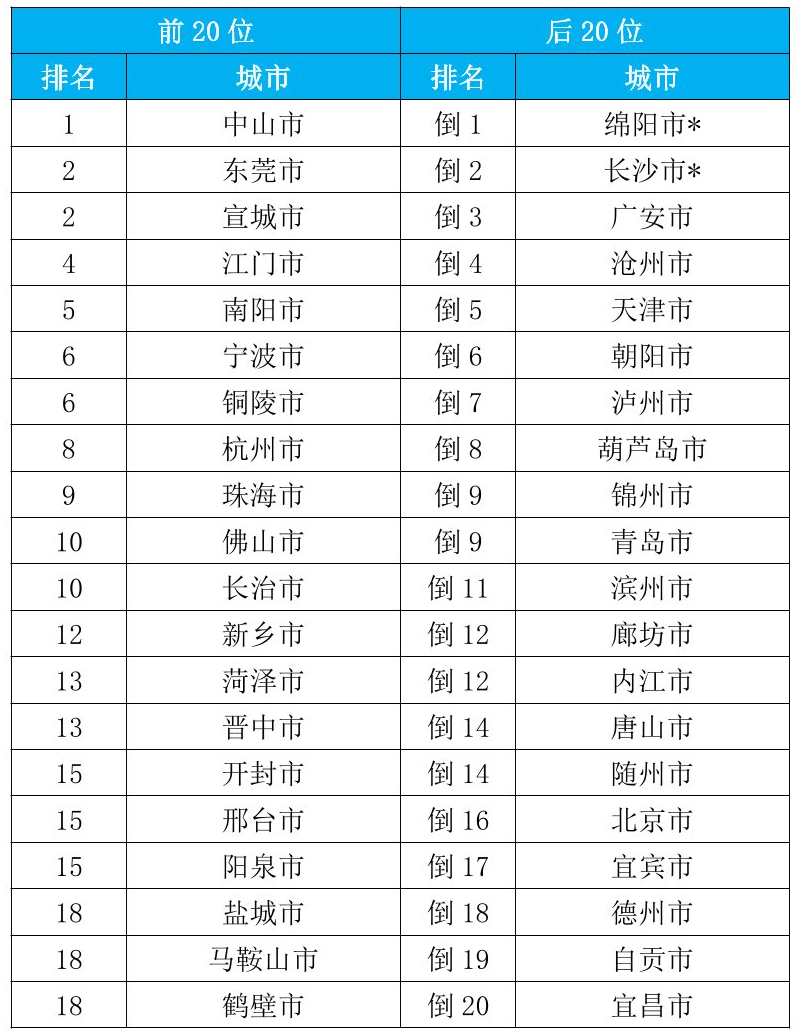 三、重点城市排名