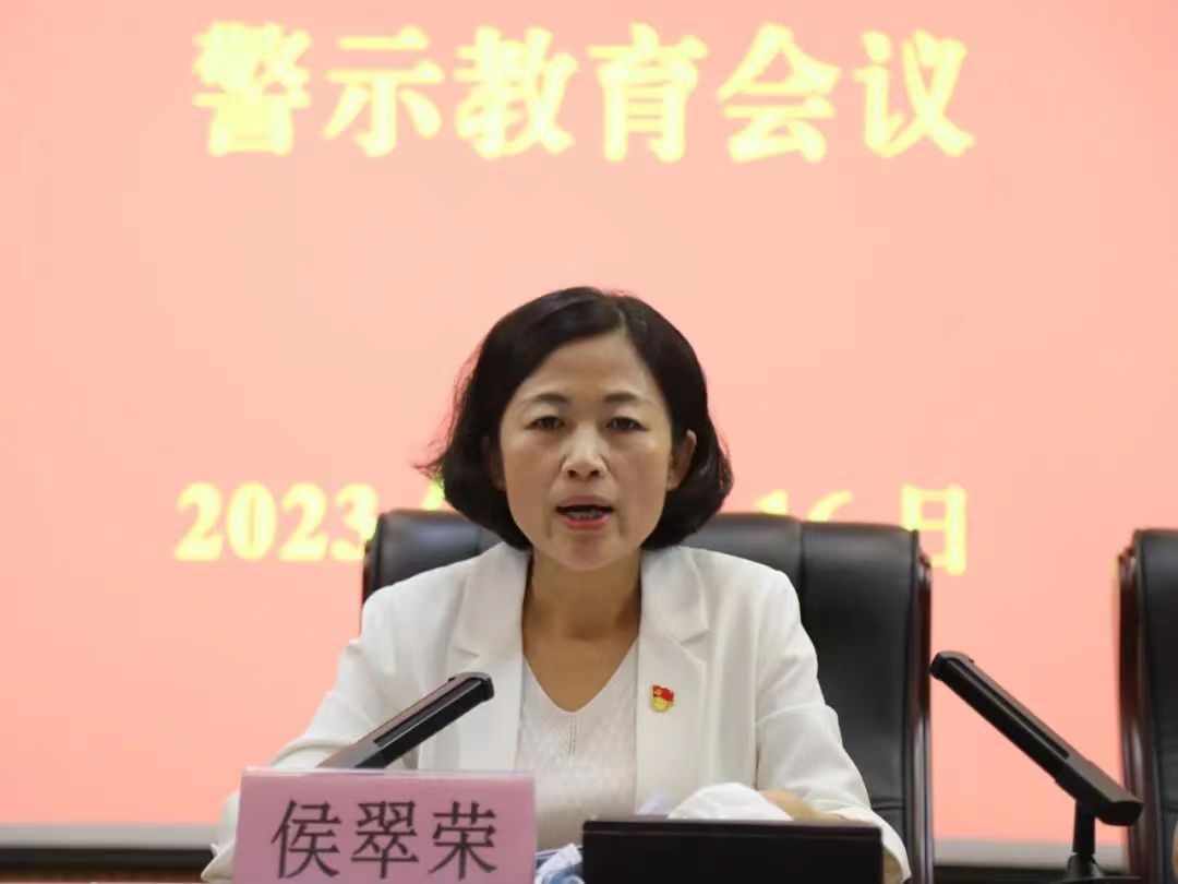 会议由厅党组成员、副厅长赵峰主持,与会人员集体观看专题警示教育片,驻厅纪检监察组组长、厅党组成员、一级巡视员席思国对违纪违法典型案件进行通报剖析,厅党组书记、厅长侯翠荣作讲话部署。
