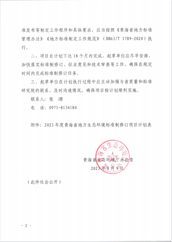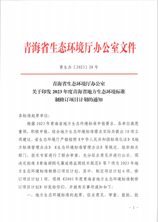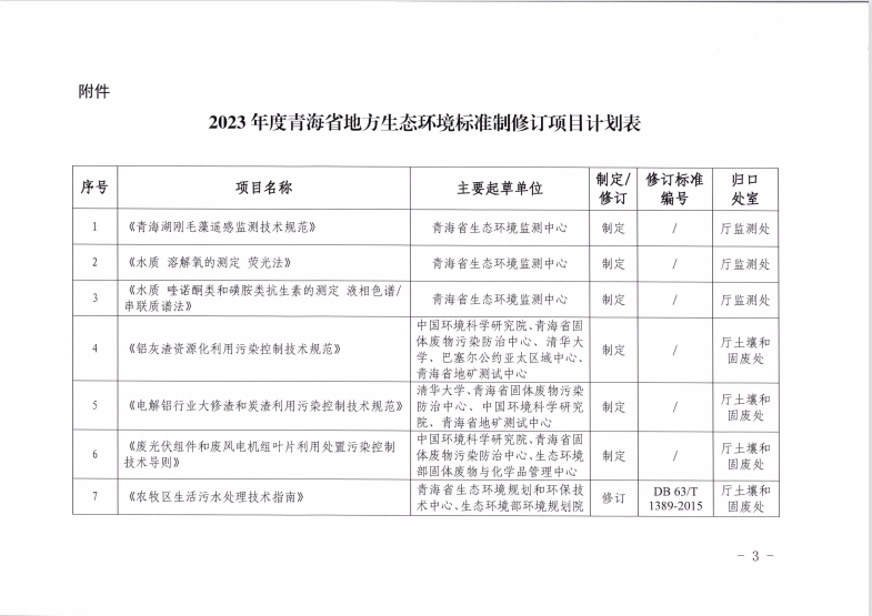 关于印发2023年度青海省地方生态环境标准制修订项目计划的通知