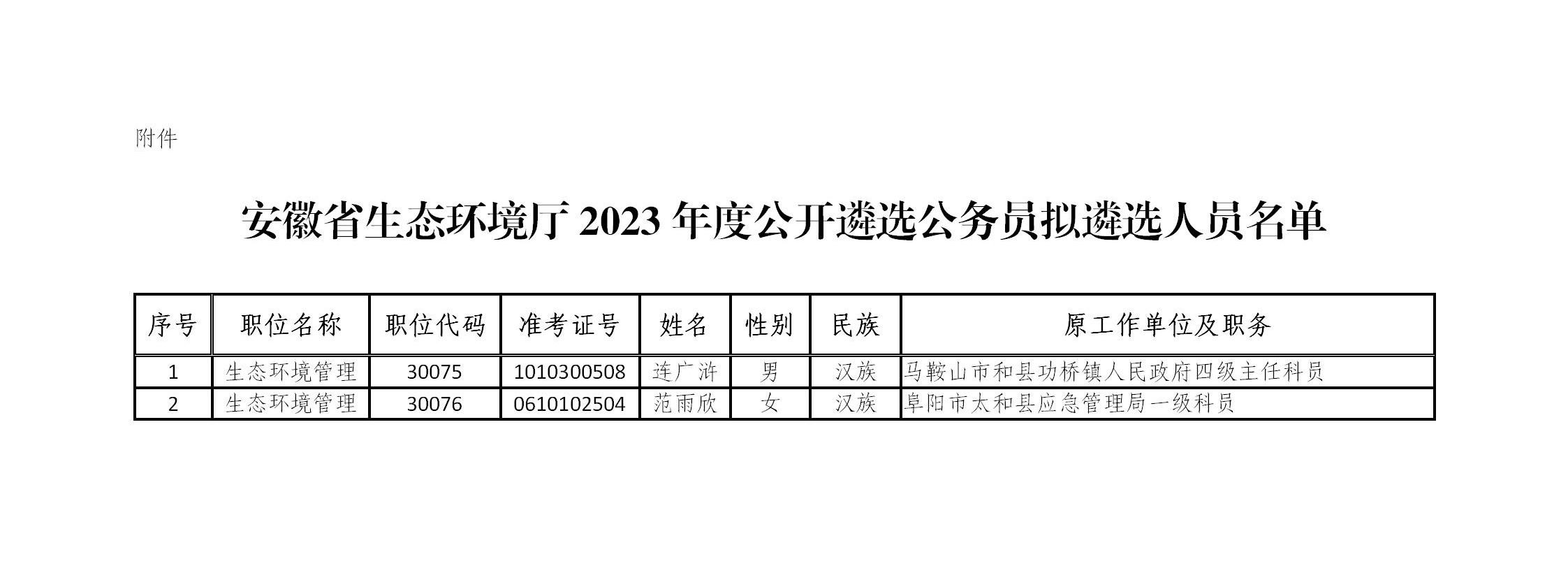 附件:安徽省生态环境厅2023年度公开遴选公务员拟遴选人选名单