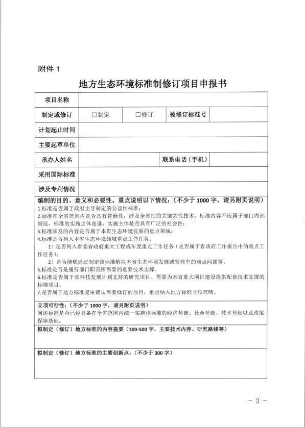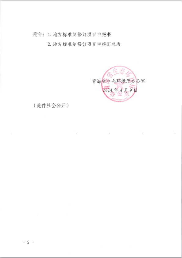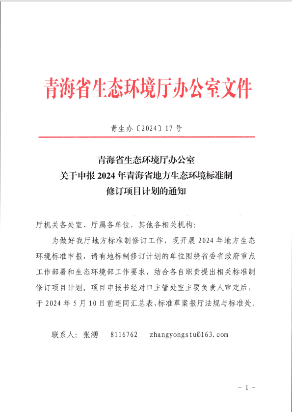 关于申报2024年青海省地方生态环境标准制修订项目计划的通知