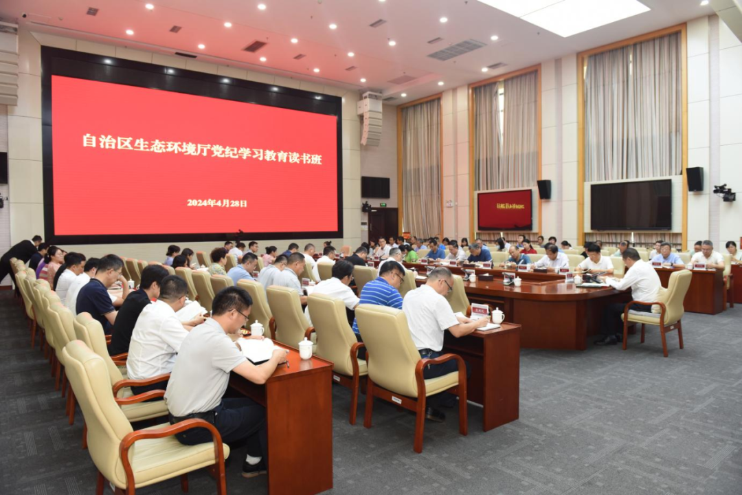 4月28日,自治区生态环境厅举行党纪学习教育读书班暨以案促改警示教育专题学习,深入学习贯彻《中国共产党纪律处分条例》(以下简称《条例》)。自治区生态环境厅党组书记、厅长陈亮出席会议并对《条例》作全文领学。