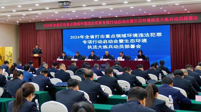 5月16日,省生态环境厅联合省公安厅、省检察院、省法院、省市场监督管理局召开全省打击重点领域环境违法犯罪专项行动启动会暨生态环境执法大练兵动员部署会,会议深入贯彻全国生态环境保护工作会议部署,总结2023年我省打击重点领域环境违法犯罪工作情况,动员部署2024年生态环境执法大练兵工作。省生态环境厅党组书记、厅长刘伟出席会议并讲话。各部门相关负责同志出席会议,并结合各自职能安排部署下步工作。