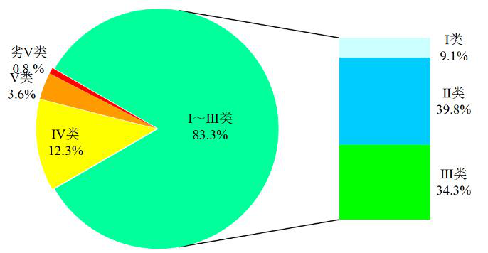 2020年10月,1940个国家地表水考核断面中,水质优良(Ⅰ-Ⅲ类)断面比例为83.3%,同比上升7.5个百分点;劣Ⅴ类断面比例为0.8%,同比下降2.1个百分点。主要污染指标为化学需氧量、总磷和高锰酸盐指数。