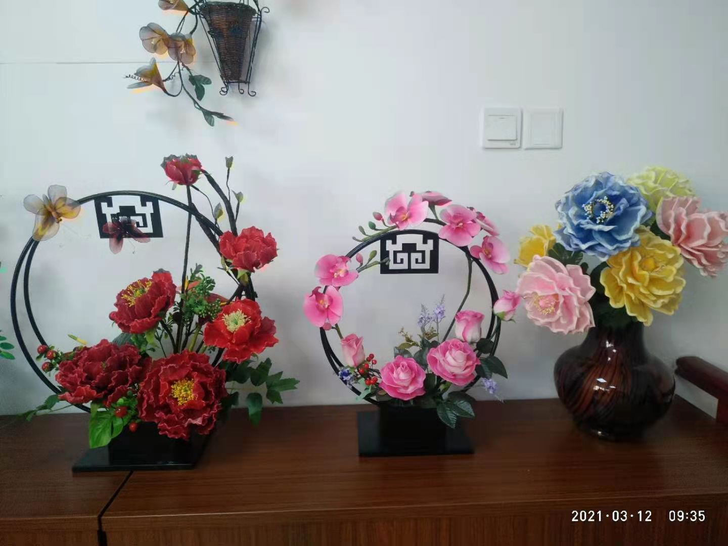 参观特色活动成果,感受传统技艺魅力。座谈结束后,王英书记带领大家参观了社区特色活动成果——“丝网花”制作展览。爱好者亲手制作的牡丹花雍容华贵、郁金香清秀淡雅、小雏菊清新秀丽……,一组组作品既形象逼真、又富有创意,大家参观后赞不绝口。王英书记结合展览向大家介绍了社区的特色活动、组织形式等,为中心党总支进一步提升职工业余文化生活成效提供了很好地借鉴和参考。