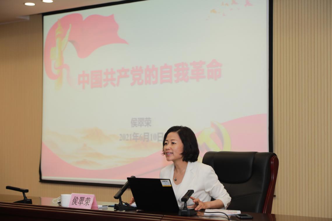 按照《关于在全省生态环境系统开展党史学习教育的实施方案》要求,2021年6月10日,侯翠荣副厅长以《中国共产党的自我革命》为题,为分管处室、单位干部职工讲授了一堂生动的专题党课。侯翠荣同志首先带领大家一同学习了习近平总书记关于自我革命的重要论述;随后,通过我党历次自我革命从而成为立于不败之地的执政党的经验,阐明了自我革命的重要意义;最后,结合业务工作阐述了生态文明建设蕴含的“自我革命”精神,要求各处室、单位以“刀刃向内”的自我革命精神,推动生态环境高水平保护和经济高质量发展。