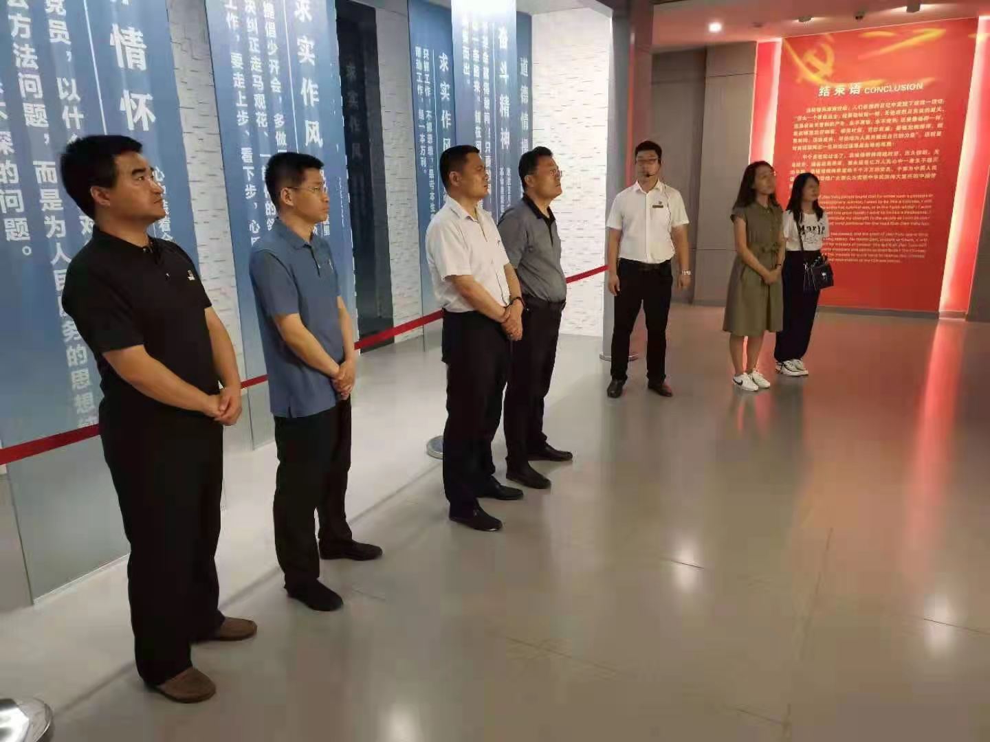 在解说员的带领下,党员干部们认真参观了焦裕禄纪念馆,深入学习了焦裕禄为党和人民无私奉献一生的感人事迹。任职兰考期间,时值该县遭受严重的内涝、风沙、盐碱三害,他坚持实事求是、群众路线的领导工作方法,同全县干部和群众一起,与深重的自然灾害进行顽强斗争,努力改变兰考面貌。身患肝癌后,依旧忍着剧痛坚持工作,用自己的实际行动铸就了“亲民爱民、艰苦奋斗、科学求实、迎难而上、无私奉献”的焦裕禄精神,感召和鼓舞了一代又一代党员干部和普通群众。党员干部们满怀感慨,在焦裕禄雕像前重温了入党誓词。