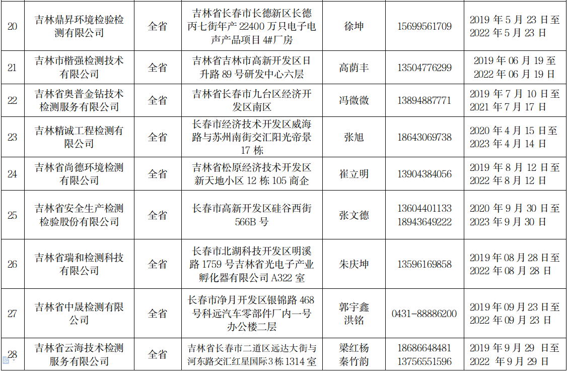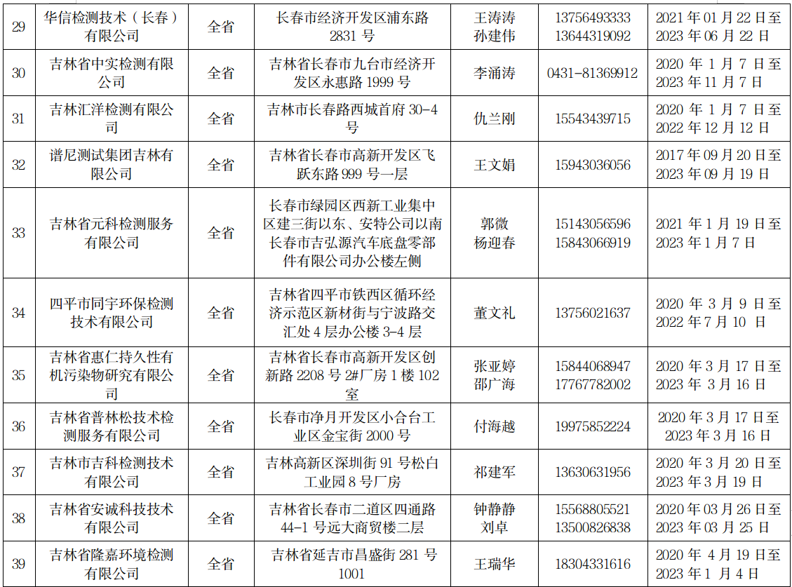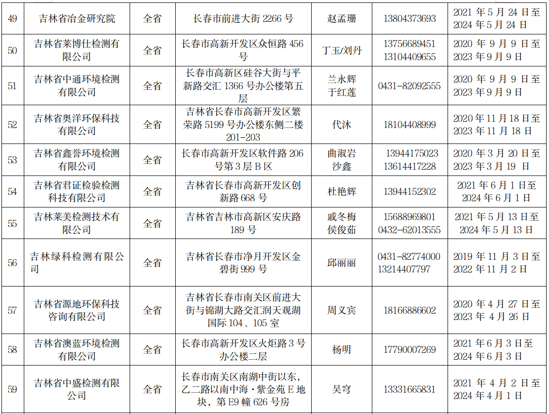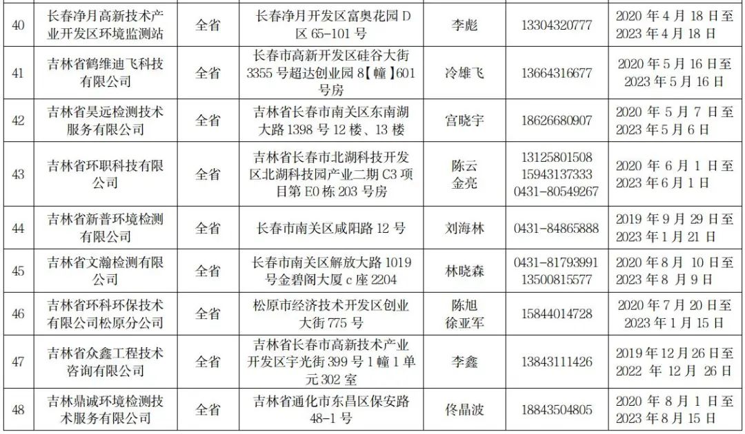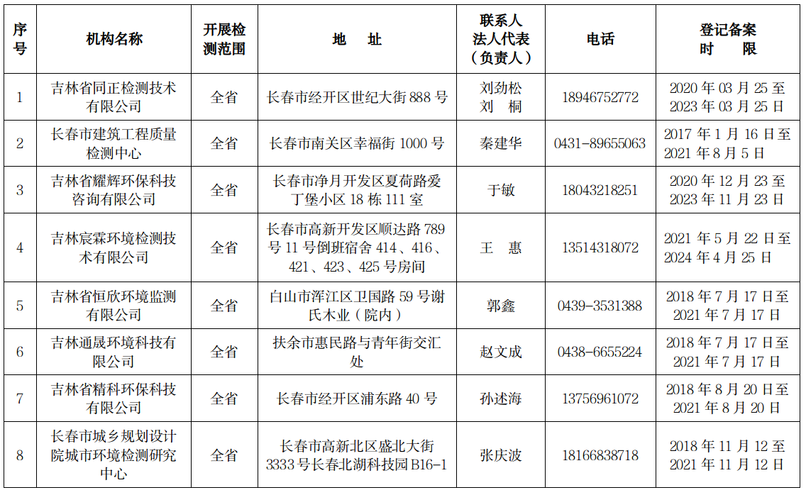 省生态环境厅发布吉林省社会化环境检测机构登记备案名单