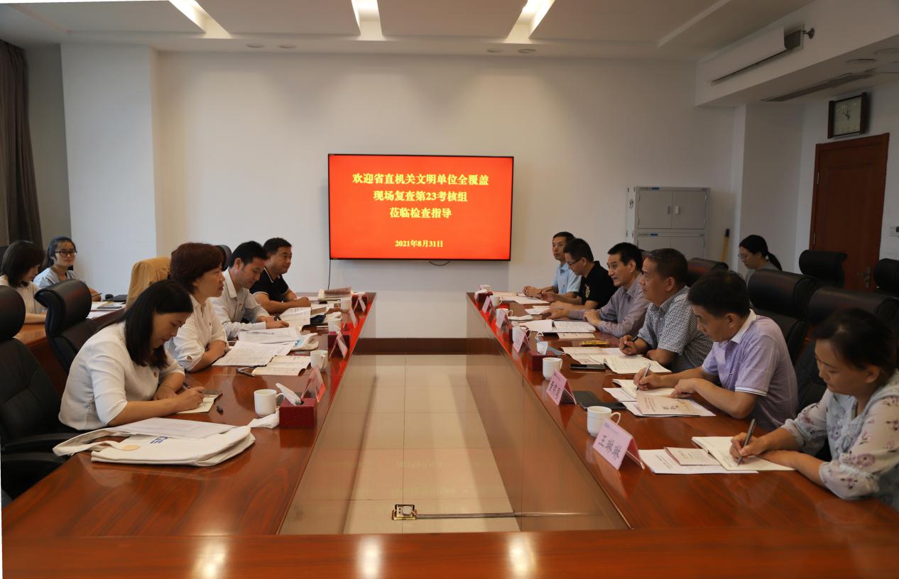 8月31日,省直机关文明单位全覆盖现场复查考核组一行4人,来省生态环境监测中心检查指导工作。省生态环境监测中心党委书记张照礼等有关人员参加活动。