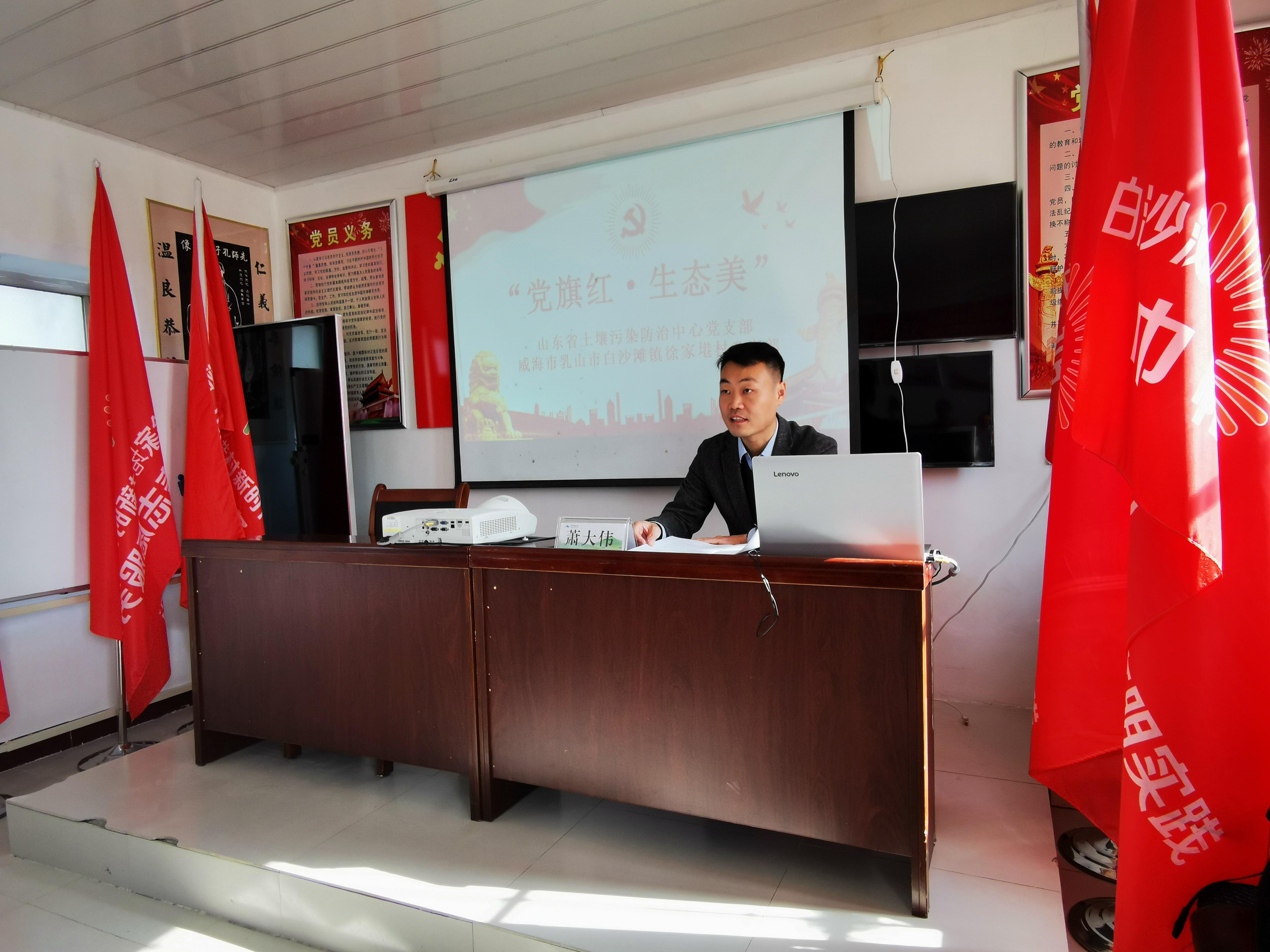省土壤污染防治中心党支部与威海市乳山市白沙滩镇徐家塂村党支部签订“党旗红·生态美”结对共建协议书。双方将立足各自实际和特点,定期开展形式多样、重在实效、突出特色的共建活动,以党建发展带动乡村振兴。结对共建活动主要包括基层党组织共建、下沉蹲点调研、结对技术帮扶等内容。技术人员围绕农村生活污水治理、农村黑臭水体治理、化肥农药减施增效、秸秆禁烧、畜禽养殖污染治理等法律法规和科普知识进行宣传。实地调研徐家塂村生活污水治理工作,针对生活污水收集处理存在的问题进行技术帮扶。