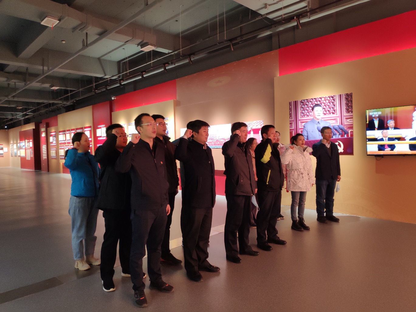参观结束后,全体党员面向鲜艳的党旗重温了入党誓词。