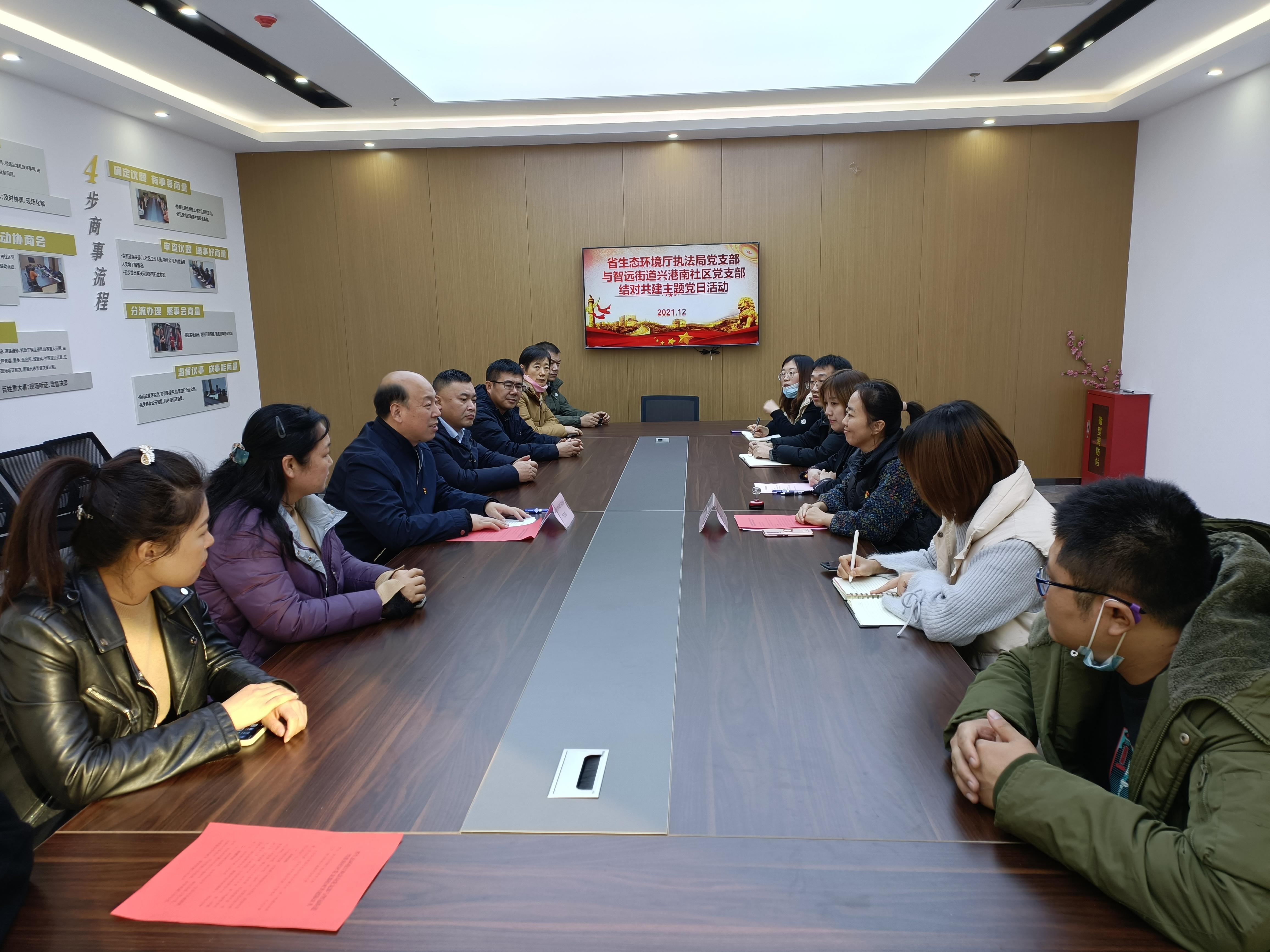 为深入学习贯彻党的十九届六中全会精神,扎实推进党史学习教育“我为群众办实事”实践活动,12月7日下午,省生态环境厅执法局党支部赴济南市智远街道兴港南社区党支部开展结对共建主题党日活动。
