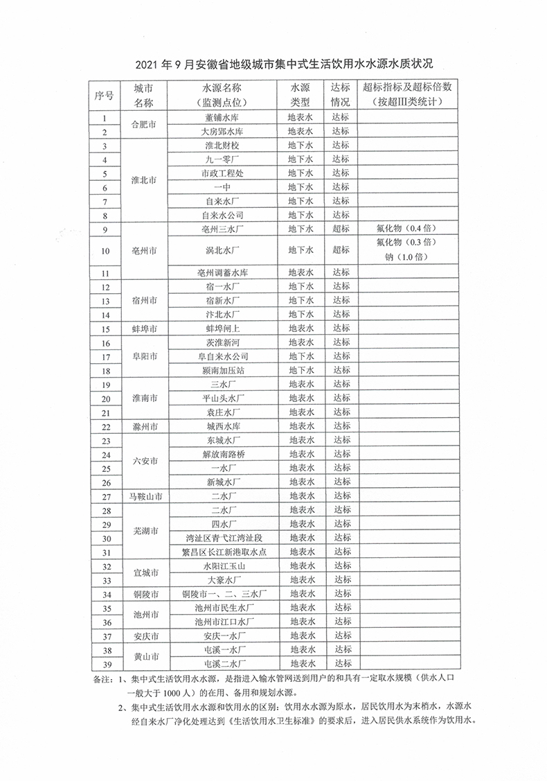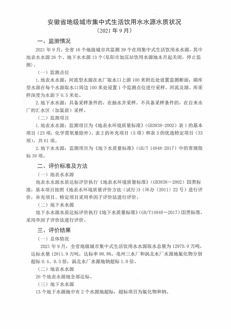 附件:安徽省地级城市集中式生活饮用水水源水质状况(2021年9月).doc