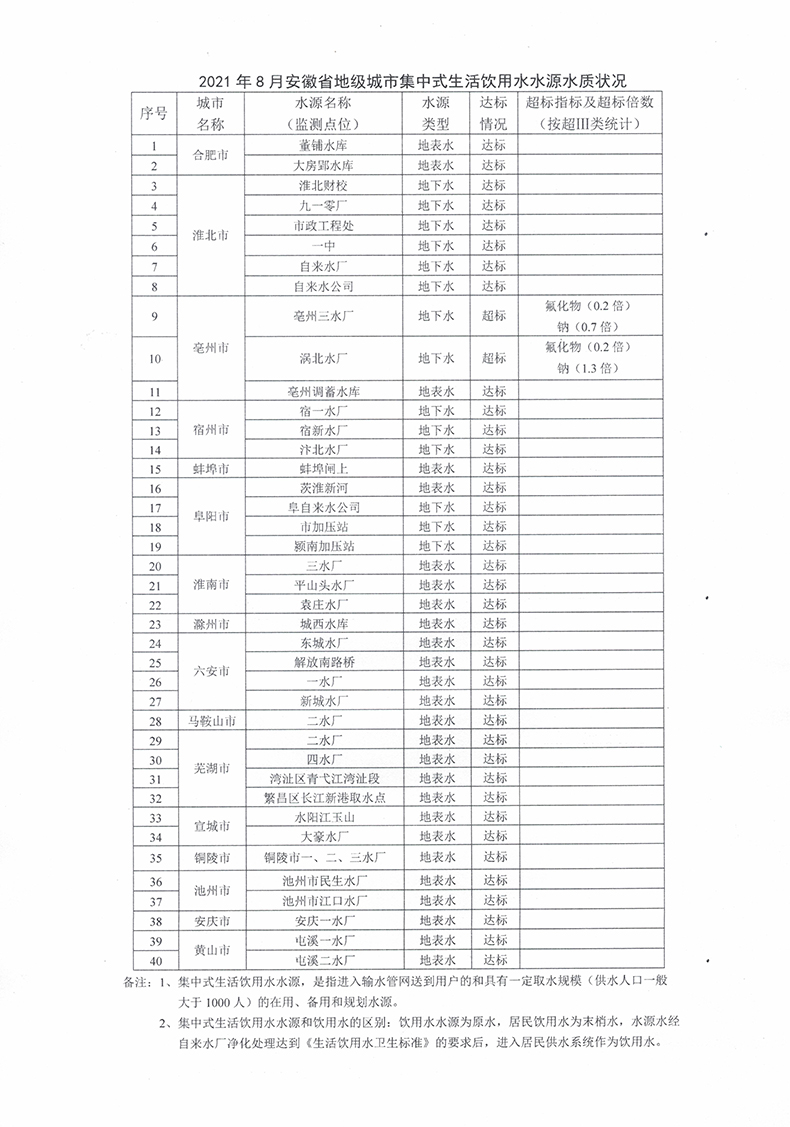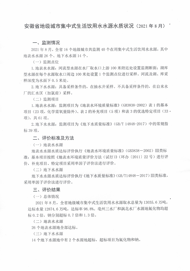 附件:安徽省地级城市集中式生活饮用水水源水质状况(2021年8月).doc