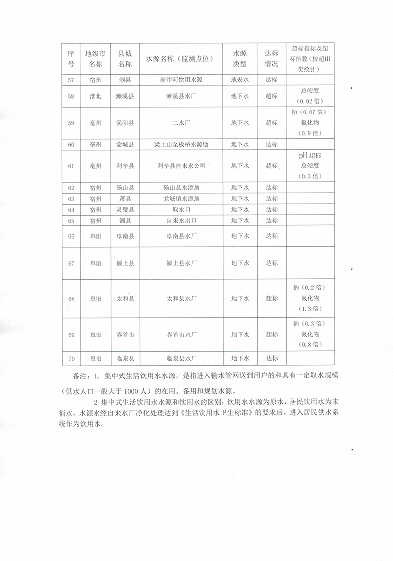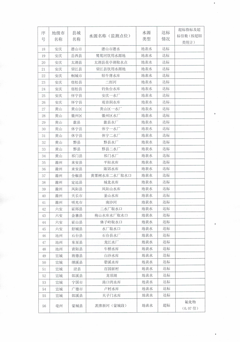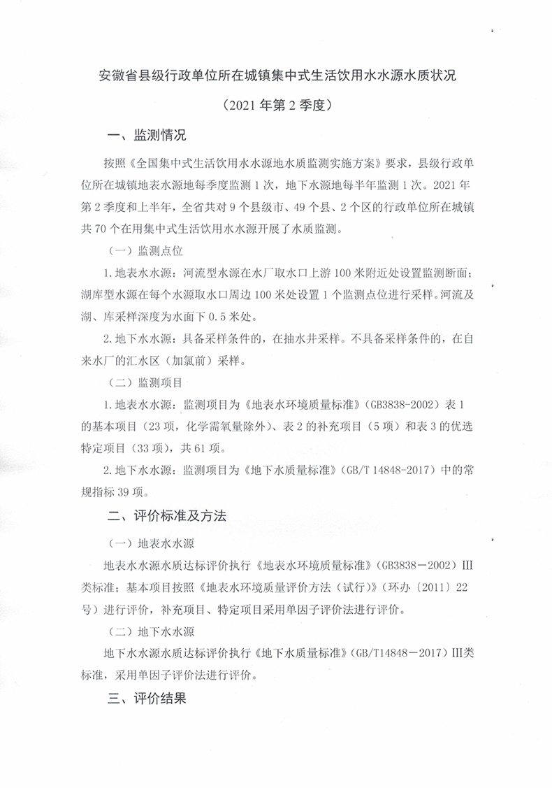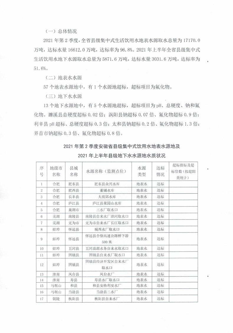 安徽省县级行政单位所在城镇集中式生活饮用水水源水质状况(2021年第2季度)
