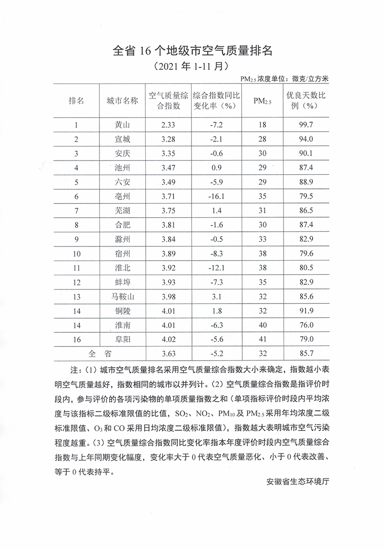 >>上一篇:全省16个地级市空气质量排名(2021年度)