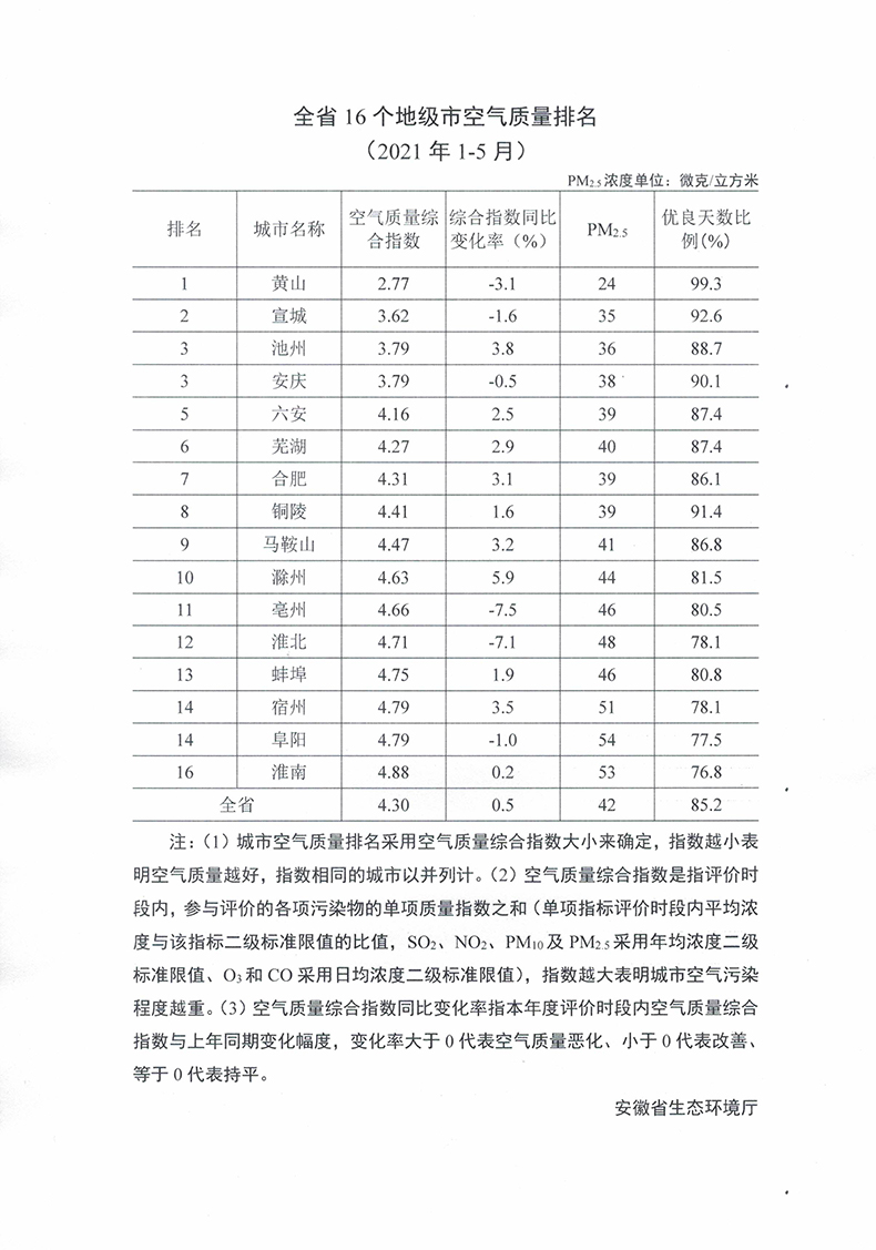 附件:全省16个地级市空气质量排名(2021年1-5月).docx