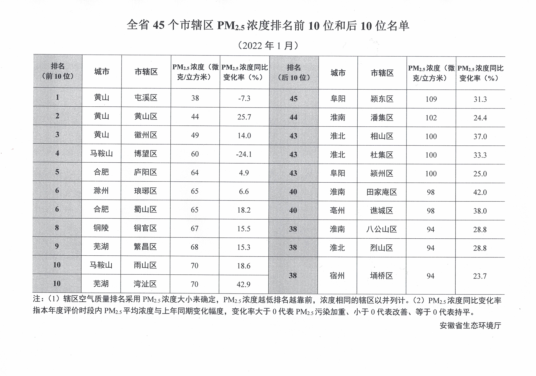 附件:全省45个市辖区PM2.5浓度排名前10位和后10位名单(2022年1月).docx