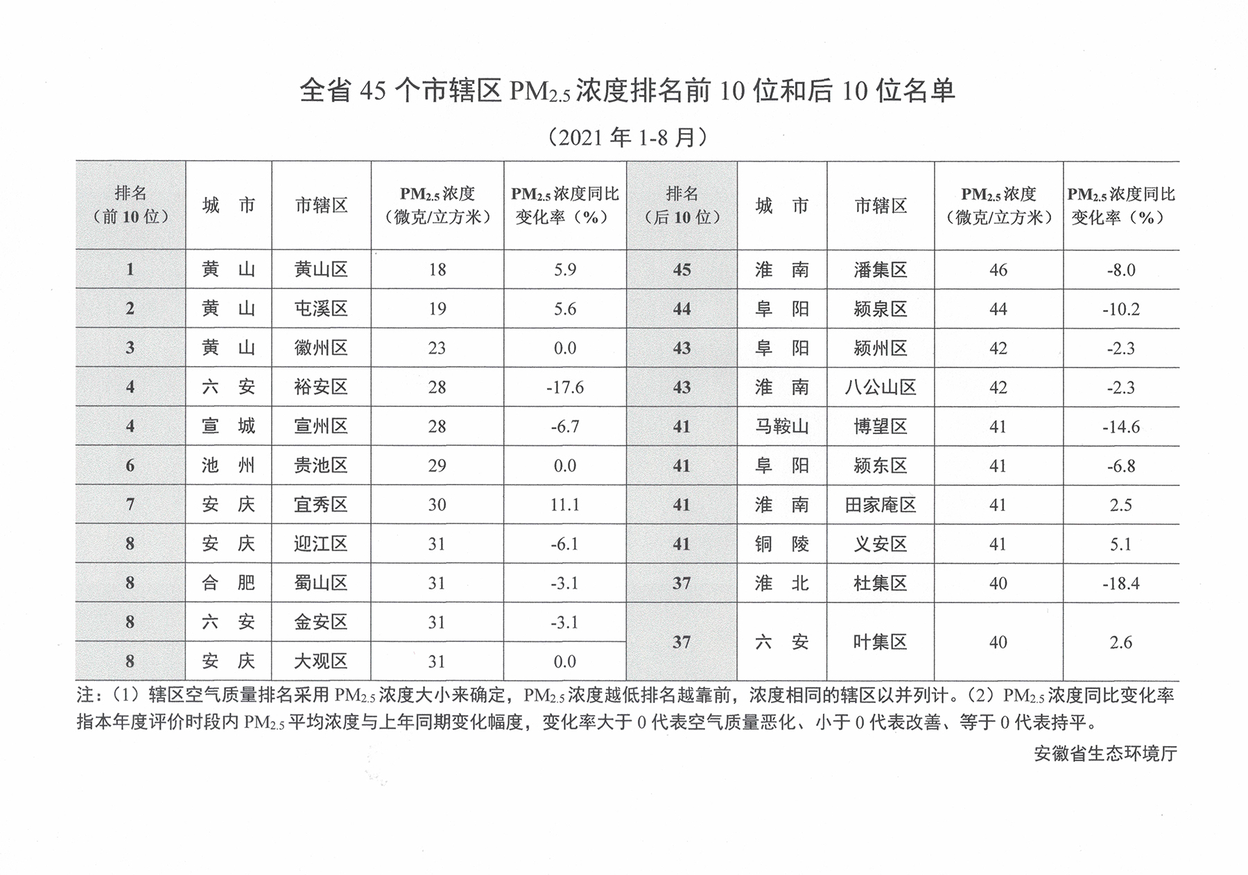 附件:全省45个市辖区PM2.5浓度排名前10位和后10位名单(2021年1-8月).docx