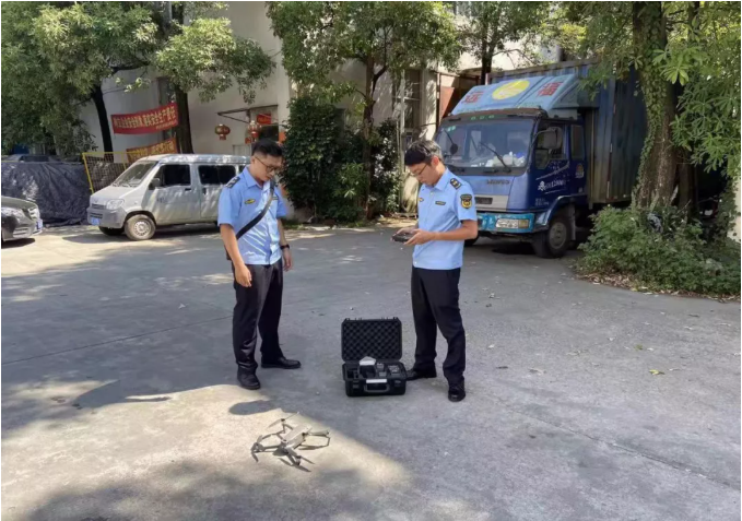 执法人员通过无人机开展远程巡查工作