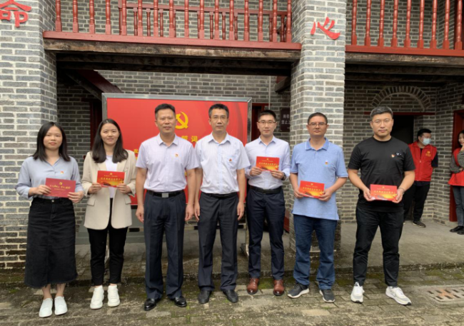 上午,省环境技术中心党支部联合清远市生态环境局英德分局党总支部来到英德市东华镇英德鱼湾苏维埃政府旧址,认真聆听工作人员的细心讲解并参观各展厅的历史文物和革命史料,详细了解鱼湾苏维埃政府旧址的背景、过程和历史意义,追忆了当年“鱼湾暴动”那段硝烟弥漫的岁月,并从中汲取“不忘初心、牢记使命”奋进前行的力量。随后,在鲜红的党旗下,两个支部全体党员面向党旗,握紧拳头,庄严宣誓,重温了入党誓词,接受革命传统教育。章泽伟同志为省环境技术中心本月过政治生日的5位党员发放了《党员政治生日纪念卡》,2位同志谈了党员政治生日感言。最后,章泽伟同志对省环境技术中心党史学习教育工作进行了现场指导,提出下阶段党史学习教育要落实深化、细化、转化、固化的“四化”要求,切实把党史学习教育与本职业务工作充分融合,紧盯为群众办实事、开新局的总体思路和工作宗旨,推动党史学习教育提质增效、走深走实,现场的广大党员备受鼓舞。