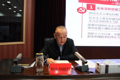专题党课上,哈尔肯·哈布德克里木同志紧紧围绕学习贯彻习近平总书记在党的十九届六中全会上的重要讲话和《中共中央关于党的百年奋斗重大成就和历史经验的决议》(以下简称《决议》),从深刻认识召开党的十九届六中全会的重大意义,深刻领会党百年奋斗取得的伟大成就和中国特色社会主义新时代取得的历史性成就和历史性变革,深刻领会党的百年奋斗的成功经验等三个方面对党的十九届六中全会精神进行了宣讲。