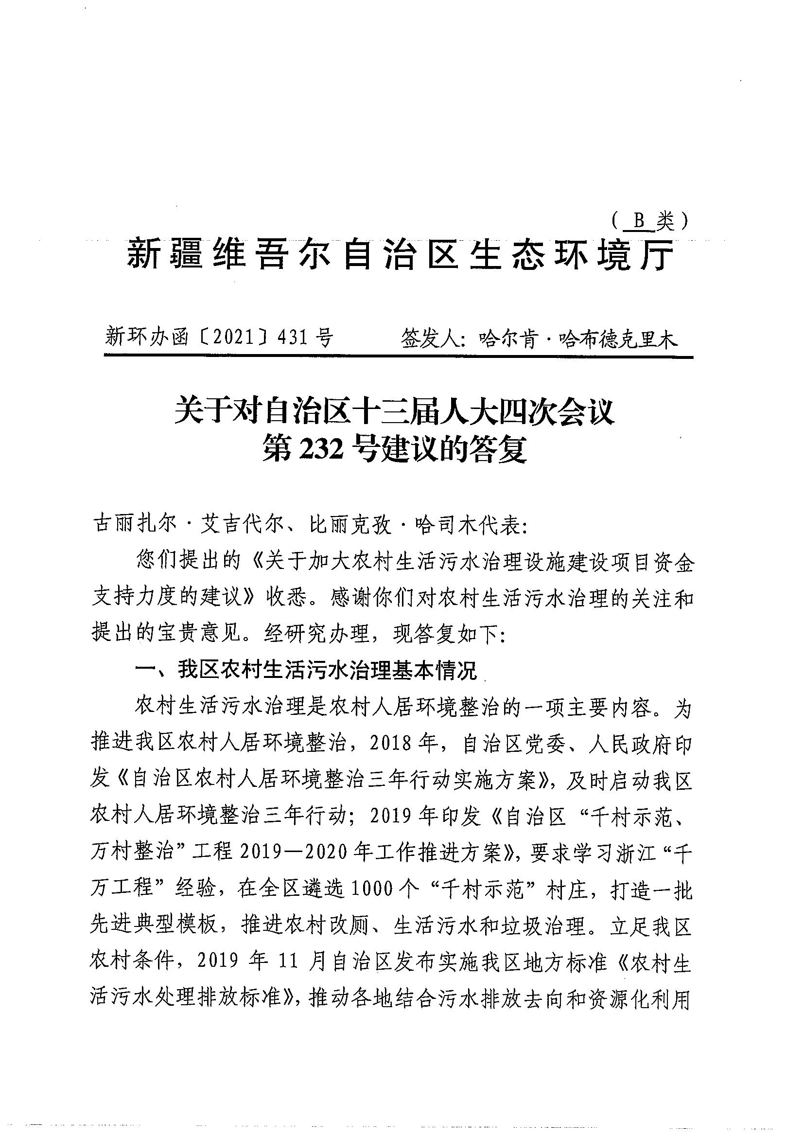 关于对自治区十三届人大四次会议第232号建议的答复