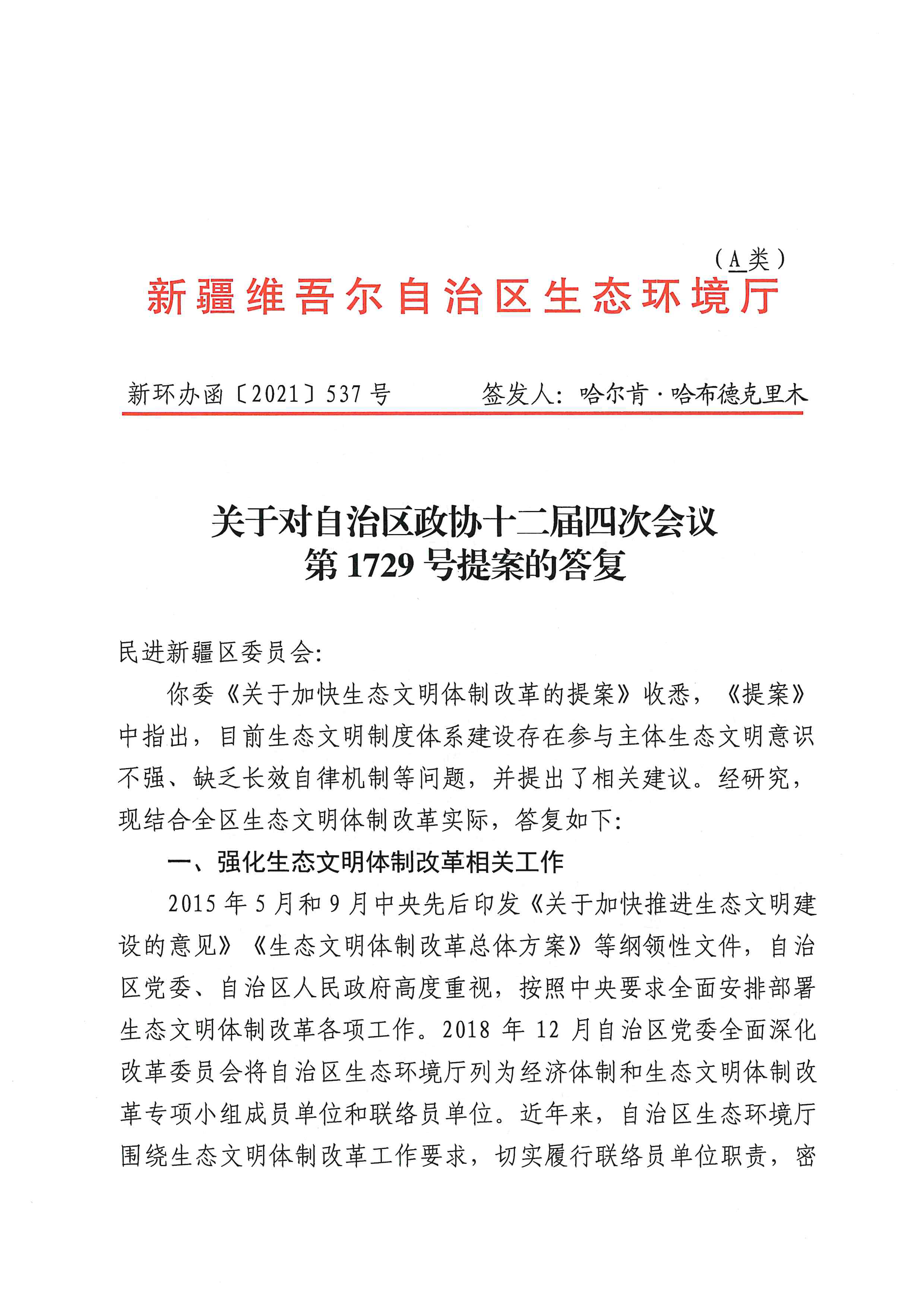 关于对自治区十二届政协四次会议第1729号提案的答复