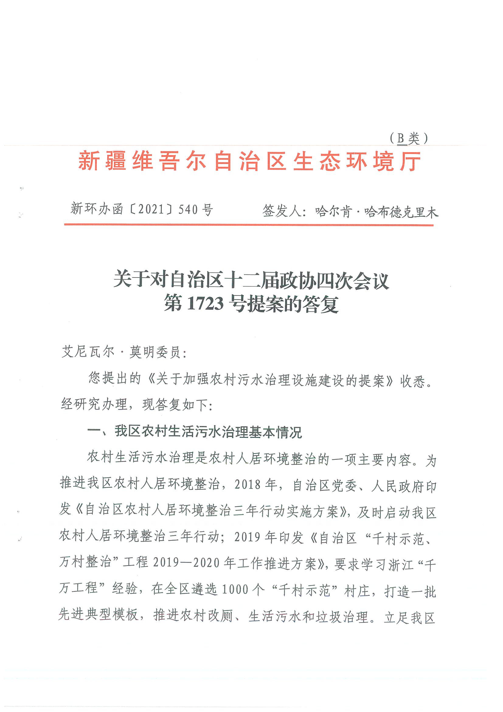 关于对自治区十二届政协四次会议第1723号提案的答复