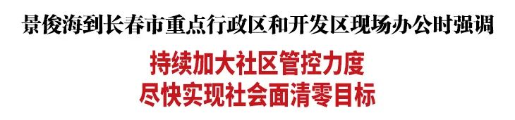 景俊海强调,当前,长春疫情仍处在胶着对垒状态,到了最吃劲的关键阶段,必须以更坚定信心、更顽强意志、更扎实作风,采取更加适应奥密克戎变异毒株传播特点的防控措施,坚决打赢长春疫情防控保卫战。要同步推进检测筛查、流调溯源、隔离消杀,聚焦重点街道、涉疫小区,精准实施“敲门行动”“扫地行动”,充分利用大数据分析和比对应用,确保第一时间找到人、控住人,彻底阻断社区传播。要落实扁平化转运机制,促进流调人员、转运车辆、社区工作人员协调联动,切实做到风险人员即查即转、日清日结。要持续加大社区管控力度,紧盯院门、看好户门,坚决守住“无疫小区”,严格控制住人员集聚流动。要聚焦学校、建筑工地、农贸市场、养老院等人员密集场所,严格落实闭环管理措施,坚决防止发生聚集性疫情。要全力抓好医疗救治,坚持中西医结合、防治并举 ,积极采取中医药早介入早干预,大力推动中医药全疗程、全方位发挥作用,切实提高治疗有效性和治愈率。要在确保防疫安全的前提下,千方百计保持市场化供应体系顺畅运转,进一步畅通线上订货渠道、提升线下配送能力,更好保障群众基本生活和就医用药需求,着力打通服务群众“最后一米”。要广泛动员机关干部和国企职工下沉一线、参加抗疫,协助社区工作人员做好群众工作,主动倾听民声、体察民情,精准对接群众诉求,及时回应社会关切,切实把群众集中反映的突出问题解决到位。
