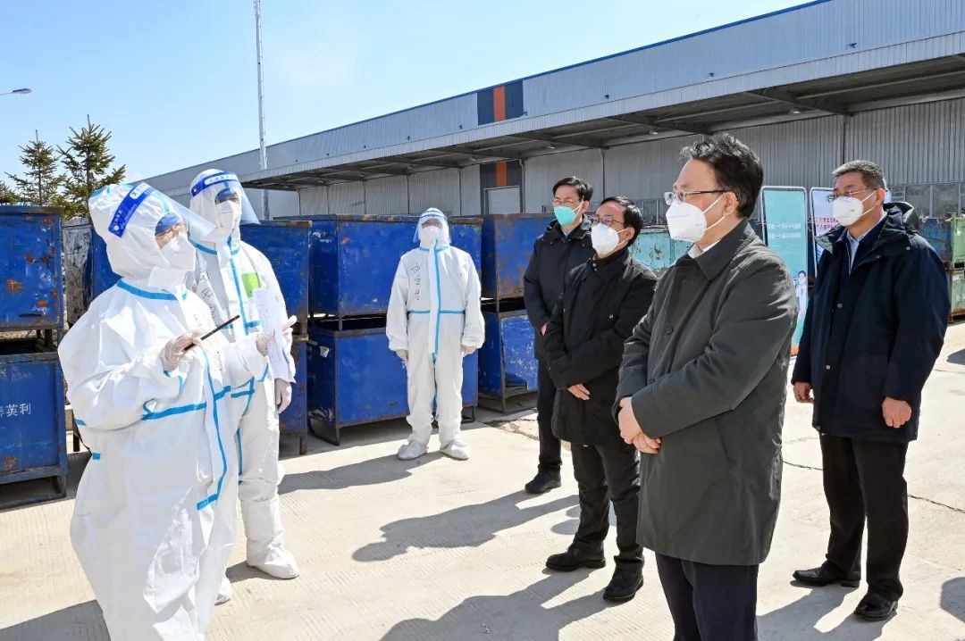 3月31日,省委书记景俊海到长春市宽城区、绿园区实地检查指导疫情防控工作,在绿园云仓详细了解生活物资保供情况。