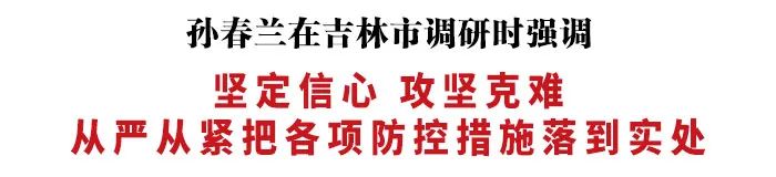 孙春兰强调,目前吉林市疫情扩散势头得到有效遏制,要进一步增强紧迫感,以更强的担当、更实的作风、更硬的手段,全力以赴抓好疫情防控各项工作。要加大流调排查力度,充实流调专班,加强流调力量,提高流调质量,确保“早发现、早报告、早隔离、早治疗”要求落实到位。要坚决落实社区管控措施,封控管理要管得住、控得严、封得彻底。以小区为单位,对符合解封条件的科学有序做好解封工作,坚持分区分级精准防控,积极创建“无疫小区”。要聚焦农贸市场、建筑工地、养老院、学校等人员密集场所,严格落实闭环管理、每日检测、及时消杀、实时监管等措施,坚决防止聚集性疫情发生。要全力抓好民生保障,加大生活物资调运、联保联供力度,有效稳定市场价格,提高物资配送速度,独居老人、空巢老人、孤寡老人以及困难群众等特殊群体要包保到人、点对点服务,牢牢兜住民生底线。要坚持实事求是、公开透明,精准及时报送信息,确保研判及时准确、应急处置到位。落实四方责任,各级党委、政府更要坚决扛起主体责任,切实履行属地责任,坚定信心、再接再厉,深入一线、靠前指挥,与广大群众一起并肩作战、攻坚克难,全力夺取疫情防控最终胜利。
