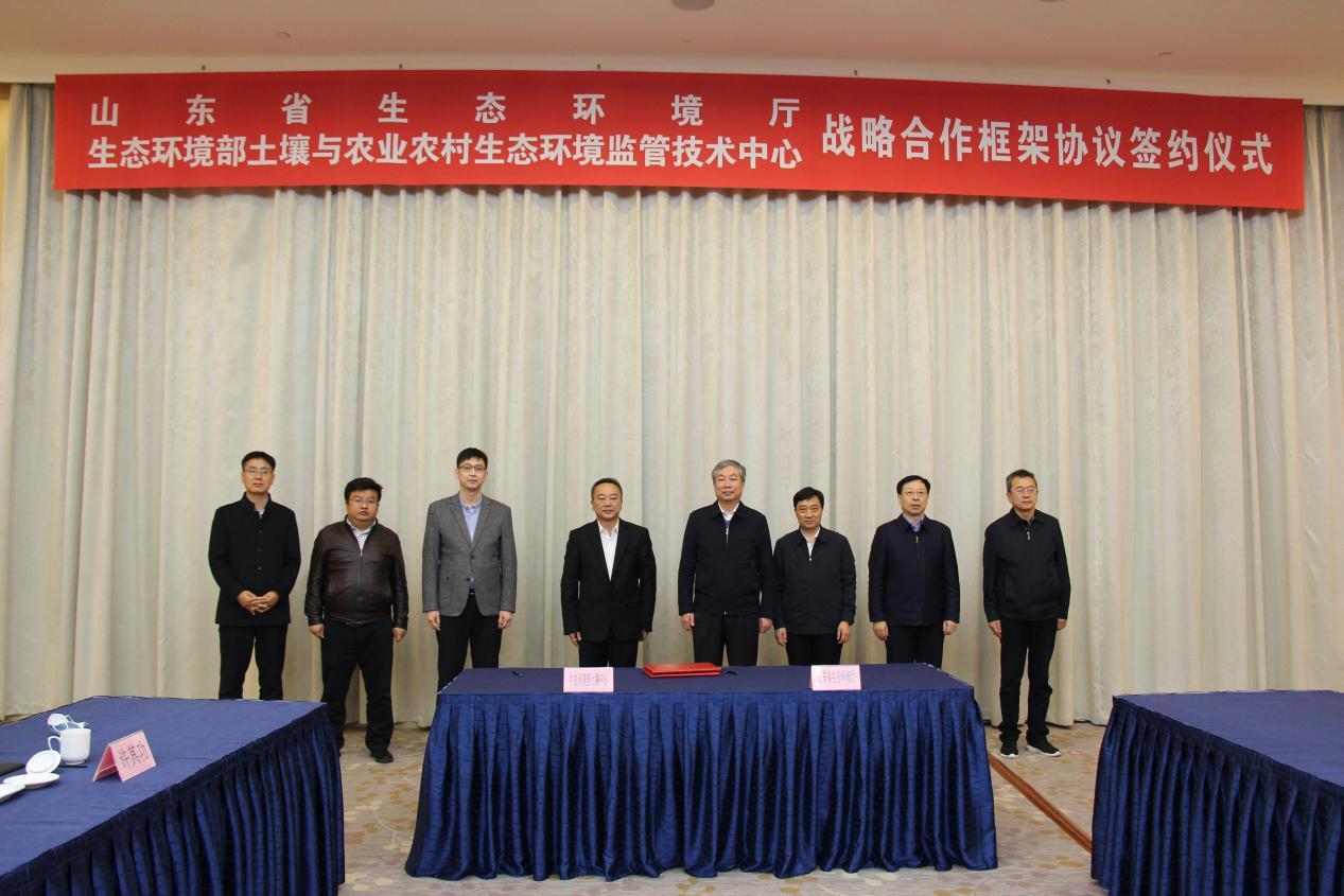 2020年11月27日,山东省生态环境厅与生态环境部土壤与农业农村生态环境监管技术中心(以下简称生态环境部土壤中心)在济南共同签署《战略合作框架协议》。中国环境科学研究院院长、生态环境部土壤中心主任李海生,山东省生态环境厅厅长宋继宝分别代表双方签署协议并讲话。省生态环境厅副厅长崔凤友、姚云辉出席签约仪式。